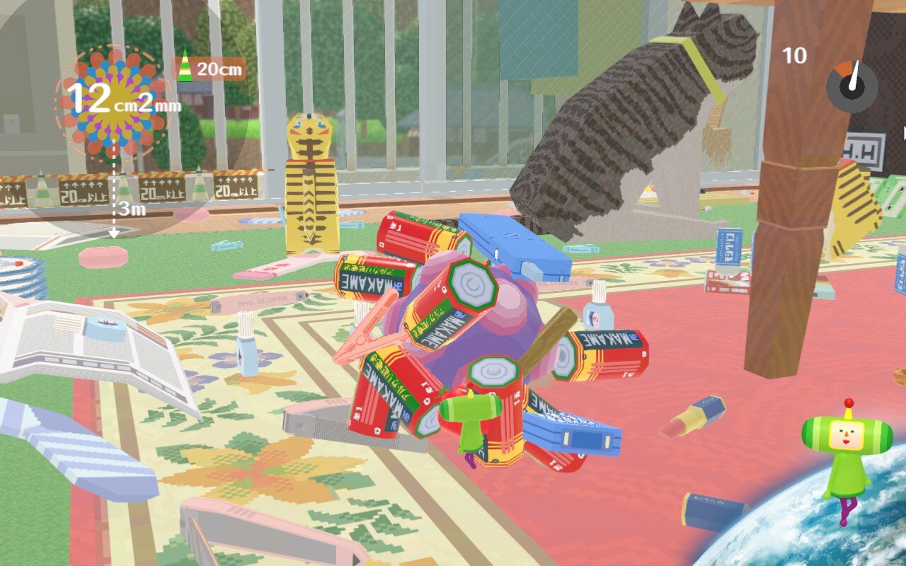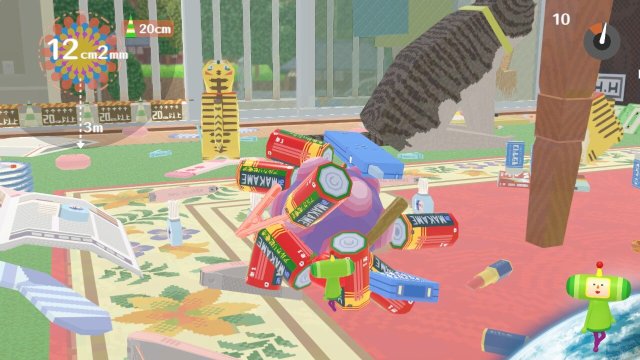 Every stage has a goal – in the first game it was usually just to make your katamari a certain size in a fixed amount of time. We ♥ Katamari added many new goals, in the form of granting requests by Earth citizens infatuated with Katamary Damacy thanks to the first game, adding a lot of much-needed variety to justify being a sequel. These range from rolling up as many animals as you can in a zoo, to rolling up flammable objects to make the biggest campfire, to rolling around a sumo wrestler so he’s big enough to compete, to rolling up as many tires as you can with a speedy katamari on a race course. These work well enough and are fun to replay to beat your old high score, but I would have liked to have seen more strict goals – the people making requests seem content with just about anything. And although I prefer the soundtrack of the first Katamari, We ♥ Katamari's soundtrack is just as good as it always was, providing just the right mood for each level.