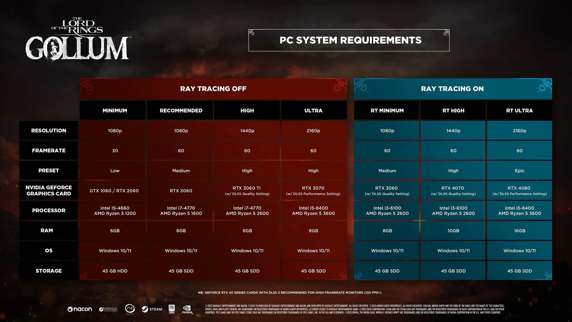 It sometimes looks pretty good in specific set pieces, but most of the time it doesn’t look any better than Skyrim from over a decade ago. I played it on an RTX 4070, and at its unimpressive max settings it still struggles at 1440p, with constant stutters and pop-in, especially on Gollum’s hair (which has its own setting for some reason). I used DLSS and frame generation to hit over 120 FPS, but that’s not an excuse for poor performance, and if the system requirement chart they released shortly before release is any indication, don’t expect it to run well on virtually any hardware. They’re planning to release this on the Switch, but I think it would be a miracle if it doesn’t end up getting canceled.